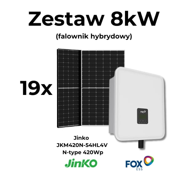 Zestaw 8kW: FoxESS H3-8.0-E + 19xJinko JKM420N-54HL4V N-type 420Wp, czarna rama